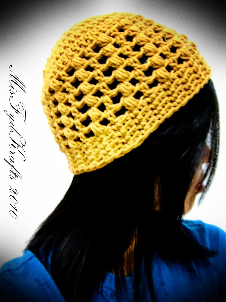 Here's the beanie while it's flat. Didn't not plan to make the puff slanting but then it's still look ok.